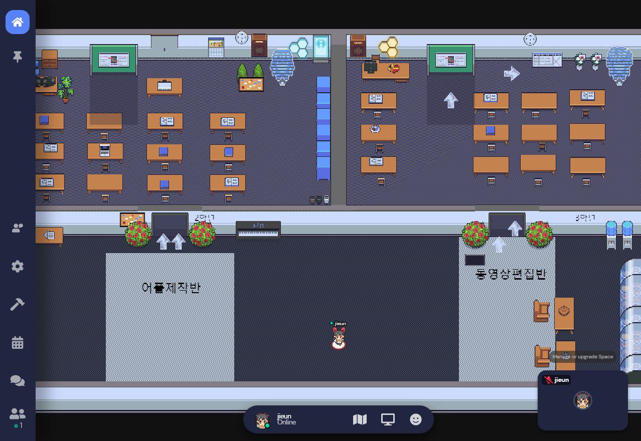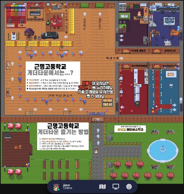 근명고등학교 게더타운 오픈 페이지 정보 작성자 한교정 작성일21-11-08 11:55 조회4,678회 댓글0건 관련링크 https://gather.town/app/5pAXoVEqkIwAEAgb/kmschool 2771회 연결 이전글 다음글 목록 본문 9/24(금) ~ 10/22(금) 총 5주 동안 근명고 학생들과 함께 게더타운 구축 특강을 시작으로 학교의 역사 및 홍보와 학과별 특성을 살린 게더타운이 완성되었습니다 :) 댓글목록 등록된 댓글이 없습니다. 이전글 다음글 목록