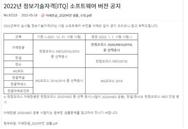 2022년 정보기술자격[ITQ] 소프트웨어 버전 공지