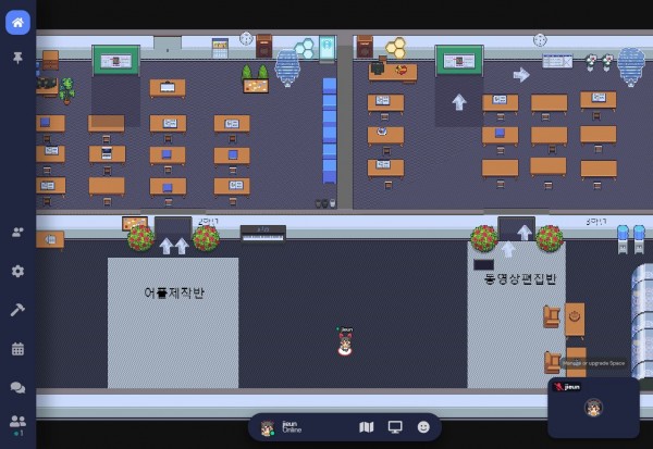 근명고등학교 게더타운 오픈 페이지 정보 작성자 한교정 작성일21-11-08 11:55 조회4,677회 댓글0건 관련링크 https://gather.town/app/5pAXoVEqkIwAEAgb/kmschool 2771회 연결 이전글 다음글 목록 본문 9/24(금) ~ 10/22(금) 총 5주 동안 근명고 학생들과 함께 게더타운 구축 특강을 시작으로 학교의 역사 및 홍보와 학과별 특성을 살린 게더타운이 완성되었습니다 :) 댓글목록 등록된 댓글이 없습니다. 이전글 다음글 목록